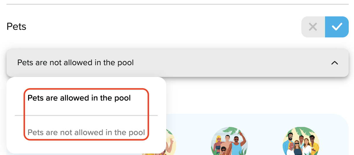 - Additionally, you can indicate unique aspects inherent to your pool so Guests can see what your space is great for. This includes adding Stickers and whether or not your space is ADA accessible:
