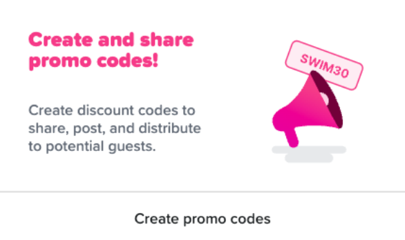 You can create a promo code with a set name, discount amount, expiration date, and a maximum number of redemptions. Guests can then enter the promo code when booking your space to receive a discount.