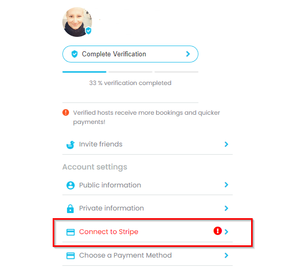 Please note that your account must be connected to Stripe in order for a booking payout to go through. For further information, or to learn more about Stripe's security, please visit their website.