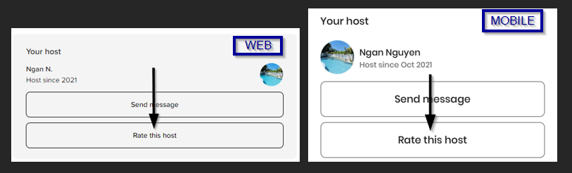 Once you are in the Past tab, simply click on the reservation you would like to leave a review for. This will bring you to the details section. Next, simply scroll down and select Rate this host.